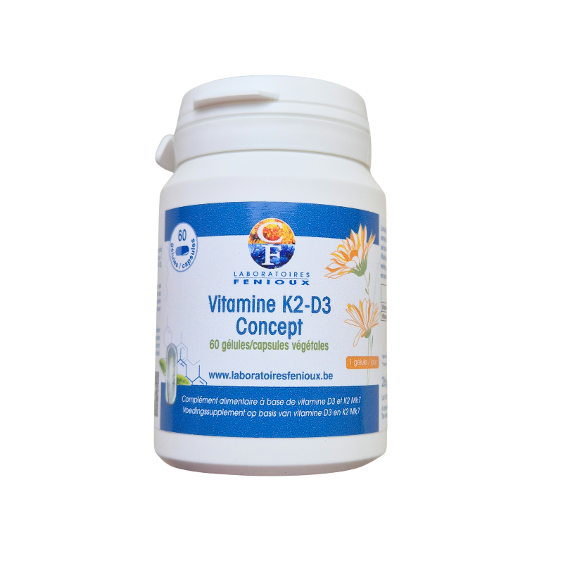 Vitamin K2-D3 Concept, Vitamin K2 Mk7 (MenaQ7) ve Vitamin D3'ün sinerjik bir birleşimidir. Vitamin K2-D3 Concept, zeytinyağı içeren kapsül formunda sunulur, bu nedenle daha iyi emilir ve daha etkilidir. K2, stabil olmayan bir vitamindir ve damlalarda bulunan hava ile temas ettiğinde hızla oksitlenir. Bu iki doğal yağda çözünen vitamin, normal kemik yapısının, normal pıhtılaşmanın, iyi kardiyovasküler sağlığın korunmasına katkıda bulunur ve bağışıklık sistemini güçlendirir. Vitamin K2 için, MenaQ7 olarak patenti alınmış doğal bir K2 vitamini olan Mk7 (menakinon 7) formunu kullanıyoruz: MenaQ7, çözücüler, alerjenler ve soya içermez, ancak en kolay emilen formdur.